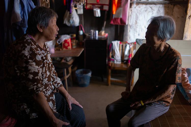 次日清晨七点多我才起床,母亲早已备好热腾腾的早饭。饭后,我提议去探望三娘舅、三娘妗和小娘妗。出门采购时,母亲说她心里有数,不让我插手挑选,我便顺从地跟在她身后。房车停稳后,我先下车准备扶母亲,她却在车里细心挑选要带给三舅的东西。几分钟后,我扶着她下车,见她双手提着物品,便赶紧接了过来。我俩沿着小径走到三舅家,只见94岁的三舅正独自在小木板上吃早饭。他穿着件泛旧的白衬衫,精神却尚可,见我们到来,神情没太多变化,只是静静看着我。母亲扶着他的肩膀问:“还认识我吗?”三舅摇了摇头。我指着母亲再问,他却立刻应道:“这是红英嘛!”2023年我曾在三舅院里住了半年,朝夕相处,可仅仅两年过去,他已明显苍老许多,状态远不如前。但这位九旬老人,满头白发依旧浓密,面色红润,神态温和又透着刚毅,衣着朴素却难掩昔日的公子气质。看着兄妹俩闲聊,平日里没什么表情的他,脸上也渐渐露出了笑容。告别三舅和三娘妗,我们又驱车前往东山头柯桥头看望小娘妗。几分钟后抵达,沿着小径往小舅家走时,远远便看见小娘妗坐在路边与邻居闲聊。她望见我们,立刻笑着打招呼,随后引我们进屋。我走进熟悉的卧房,发现窗边的窄床换成了宽床,老房子里东西虽多,却收拾得整整齐齐。两位老人坐在床边闲谈时,我按惯例去周边邻居家转了转,随手拍了些乡村景致。